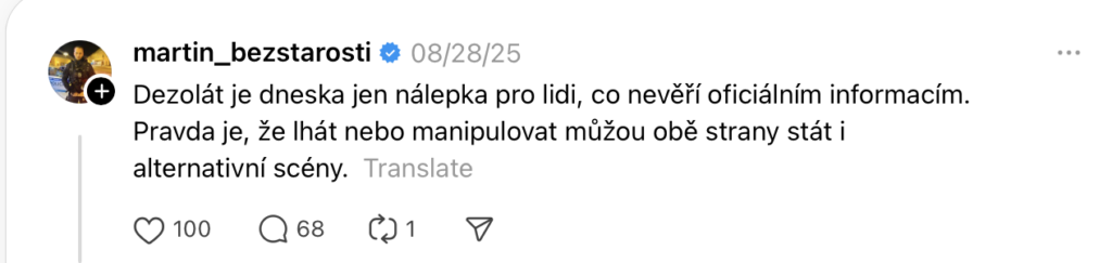 Informace navíc nejsou úplné, často dezinterpretuje skutečnost a šíří dezinformace nebo informace naprosto vytržené z kontextu.